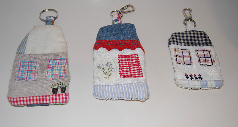 Quan m'hi poso, m'hi poso de veritat. Aquests dos dies he fet tres clauers de caseta. Dues de les casetes tenen testos i flors brodades i l'altre caseta flors d'aplicació. Espero que us agradin.